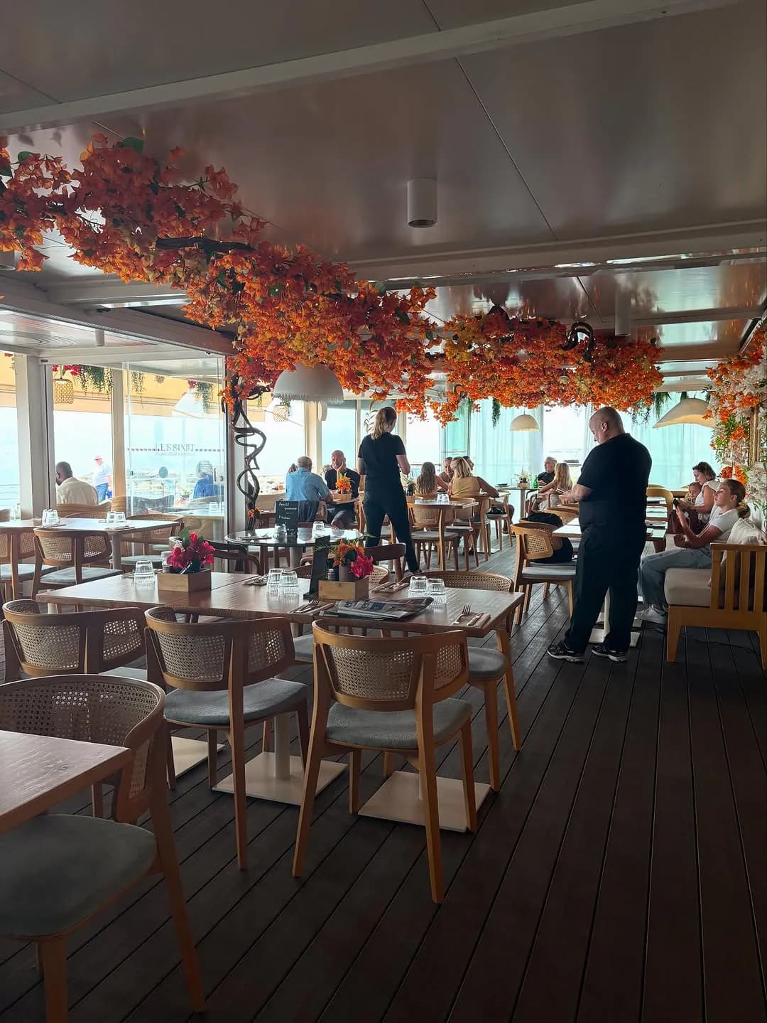 78 couverts en terrasse et en salle. Une ambiance décontractée et chaleureuse avec une vue mer imprenable, du petit-déjeuner au dîner.